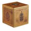 of cubic form, with banded inlay and oval medallions to the sides, opening to a single covered well
