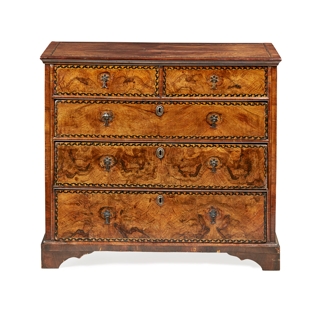 WILLIAM AND MARY WALNUT, EBONY AND INLAY CHEST OF DRAWERS