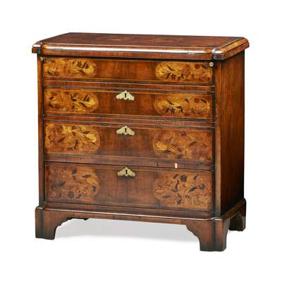 DUTCH WALNUT AND MARQUETRY BACHELOR'S CHEST OF DRAWERS