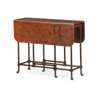 the rectangular top with drop leaves and rounded corners, raised on slender round legs joined by peripheral stretchers, ending in pad feet
