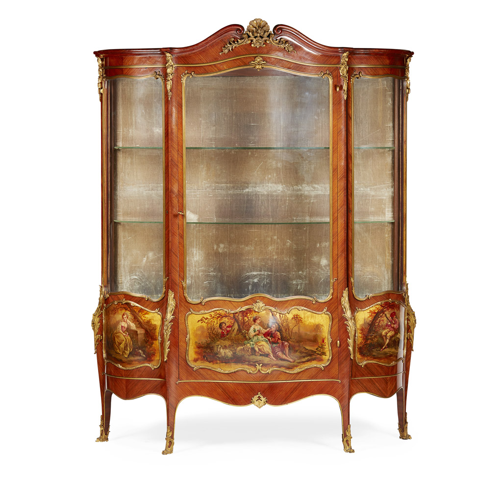 LARGE FRENCH KINGWOOD AND VERNIS MARTIN VITRINE CABINET