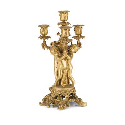 FRENCH GILT BRONZE FIGURAL CANDELABRA