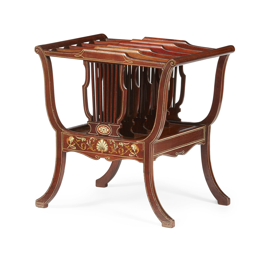 EDWARDIAN MAHOGANY AND IVORY INLAY CANTERBURY