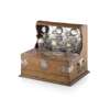 with silver-plated mounts and three cut glass decanters, with compartments for cigars and a drawer fitted with games