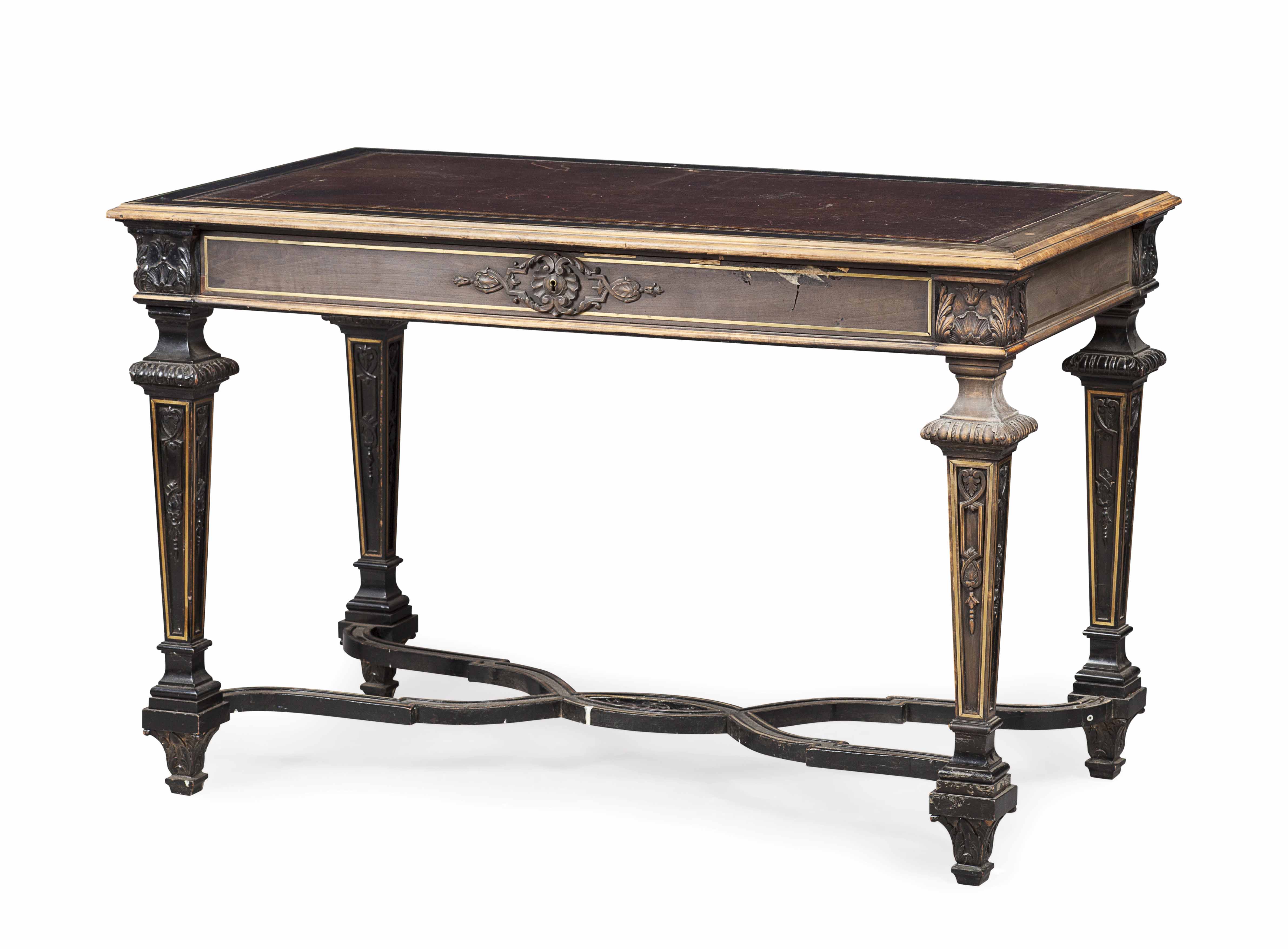 FRENCH EBONISED AND BRASS LINED BUREAU PLAT