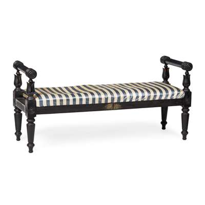 REGENCY EBONISED HARDWOOD HALL BENCH