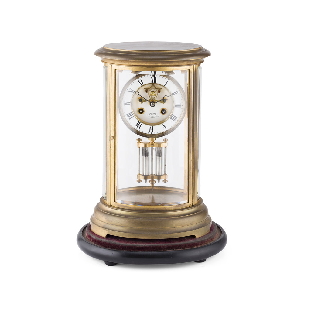 FRENCH BRASS OVAL FOUR GLASS MANTEL CLOCK