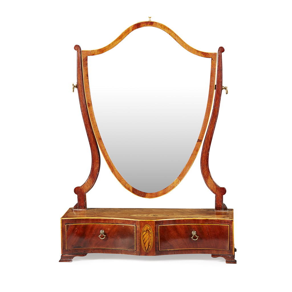 GEORGE III MAHOGANY AND HAREWOOD DRESSING MIRROR