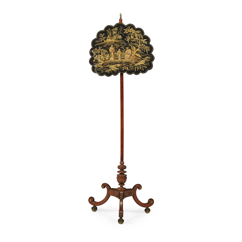 REGENCY ROSEWOOD AND PAPIER MÂCHÉ POLE SCREEN