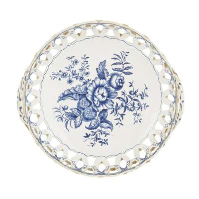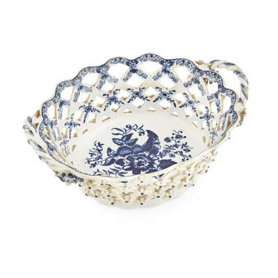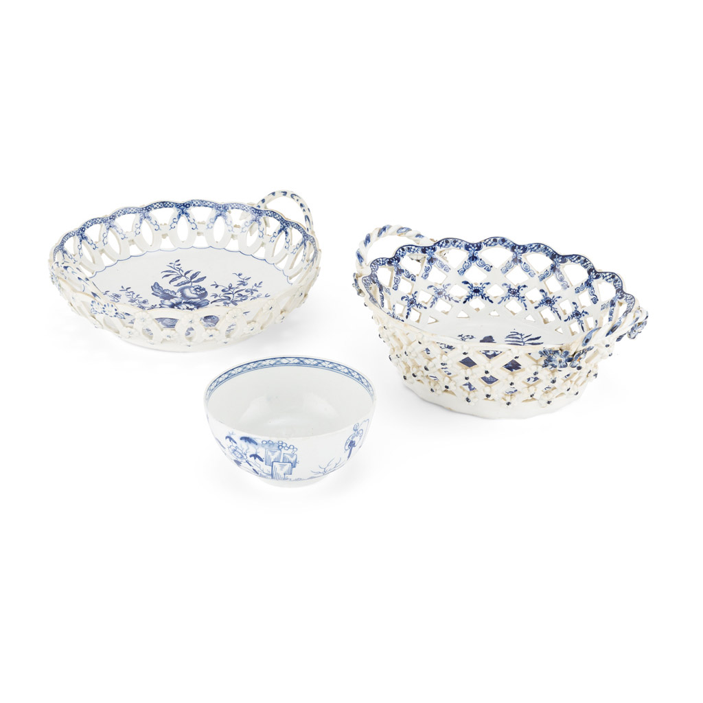 TWO WORCESTER BLUE AND WHITE 'PINE CONE' PATTERN BASKETS