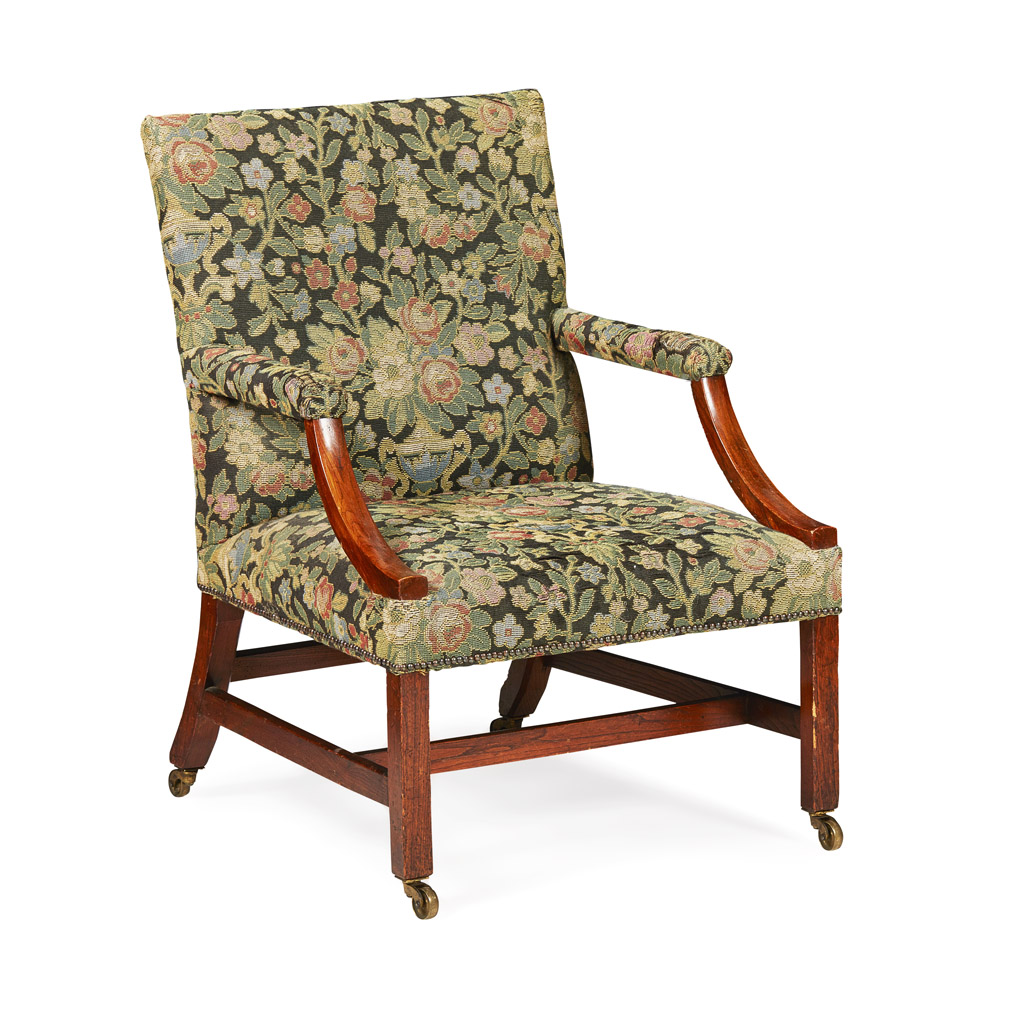 GEORGE III STYLE ELM LIBRARY ARMCHAIR