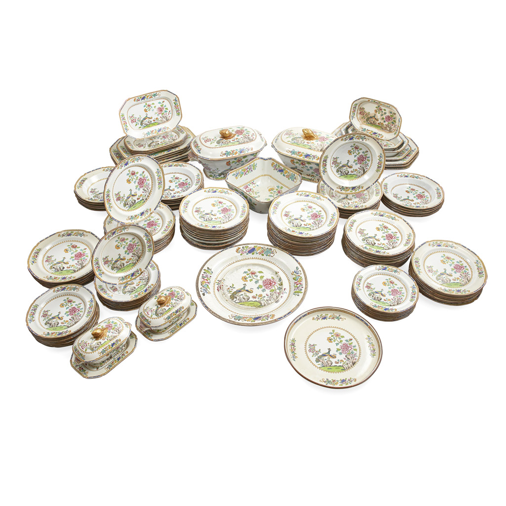EXTENSIVE SPODE STONE CHINA 'PEACOCK' PATTERN DINNER SERVICE