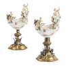 the neff shaped porcelain bowls mounted with a figure of Amphitrite and a sea serpent, supported on gilt and patinated metal lobed bases mounted with hippocamps (2)