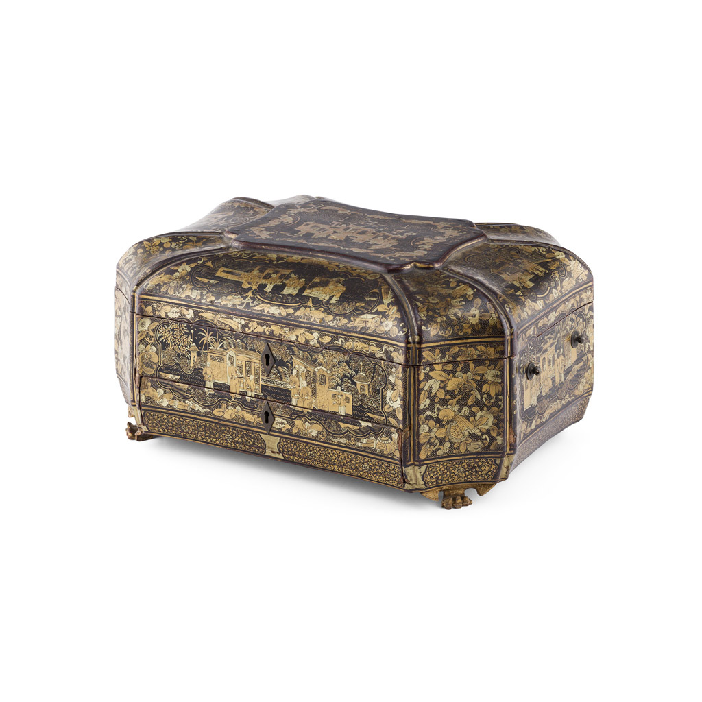CHINESE EXPORT BLACK LACQUER WORK BOX Y