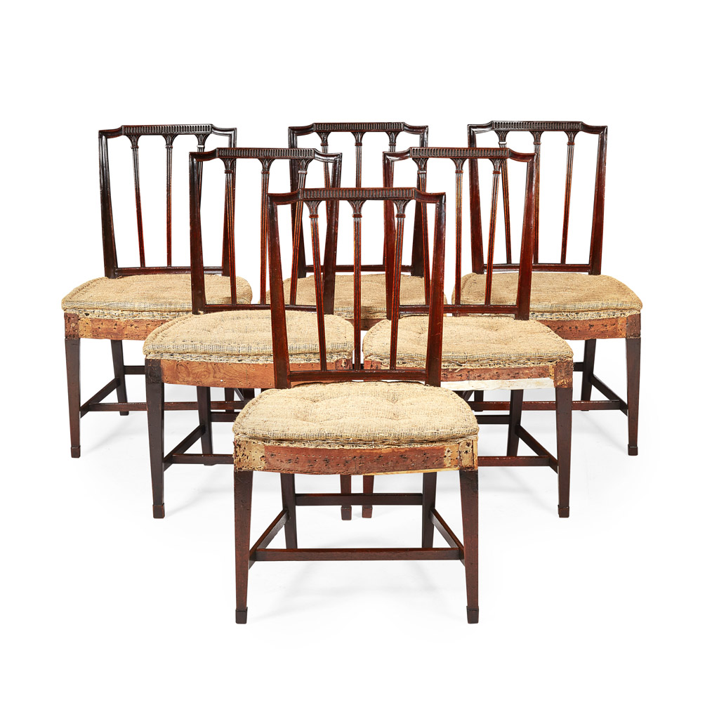 SET OF SIX GEORGE III MAHOGANY BRANDER BACK DINING CHAIRS