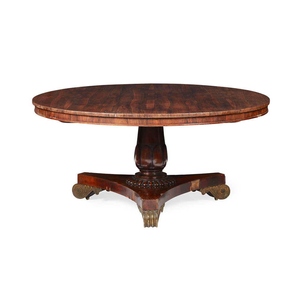 GEORGE IV ROSEWOOD AND BRASS MOUNTED CENTRE TABLE