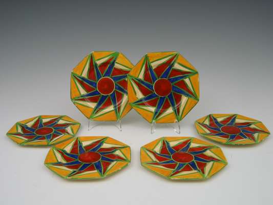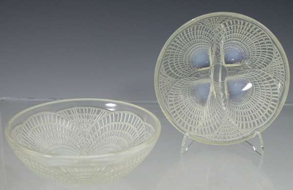 'Coquilles', a set of six Lalique clear and opalescent glass bowls,