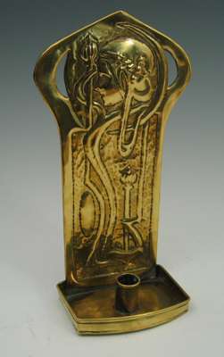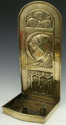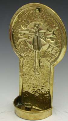 A Scottish Arts and Crafts brass candle sconce by Agnes Bankier Harvey,