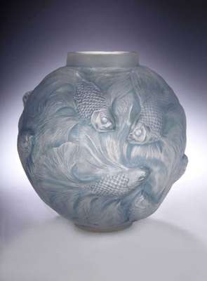'Ceylan', a Lalique frosted and opalescent glass vase,