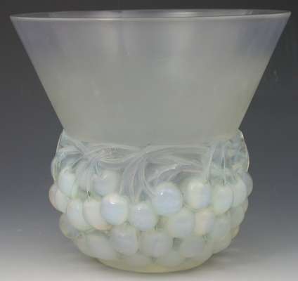 'Cerises', a Lalique clear, frosted and opalescent glass vase,
