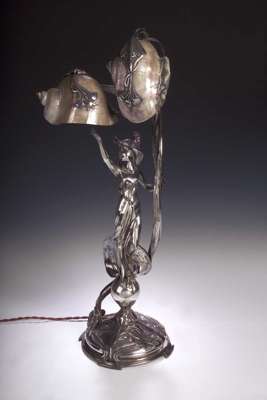 A Moritz Hacker Art Nouveau electroplated table lamp,