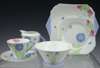comprising six tea cups, six saucers, six plates, a cake plate, a sugar bowl and a milk jug, each painted with sprays of flowers, printed factory marks, painted mark 11985