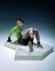 modelled as a fallen skater, painted in colours and raised on a stepped zigzag 'ice' base with opposed dishes, painted marks
