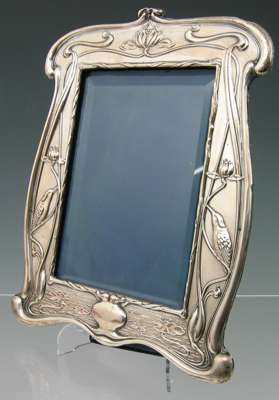 of shaped rectangular outline, embossed with kingfishers and waterlilies, hallmarked Chester 1905
