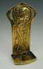 the shaped back plate repoussé decorated with the profile of a girl amidst poppies, above a single candle nozzle and drip tray