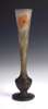 of slender tapering form with bulbous body and applied foot, the frosted body with mottled grey inclusions decorated with flowering poppies