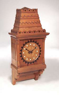 A mid 19th century Gothic Revival pitch pine wall clock,