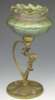 the ovoid body with frilled rim raised on a bronzed stand cast with whiplash foliage on a spreading base