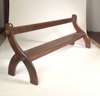 each with curved side supports forming crossed legs, linked by canted back above solid seat