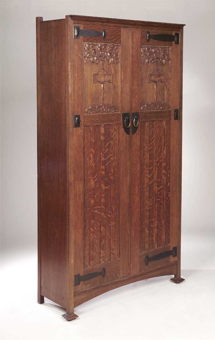 An Arts and Crafts oak wardrobe,