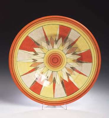 A large Clarice Cliff 'Bizarre' circular charger,