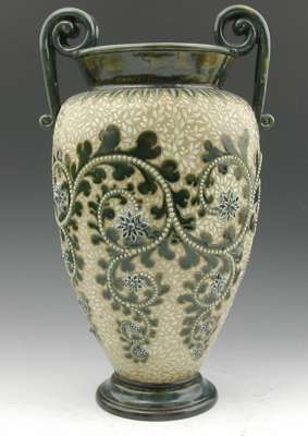 A large twin- handled Doulton Lambeth stoneware vase,