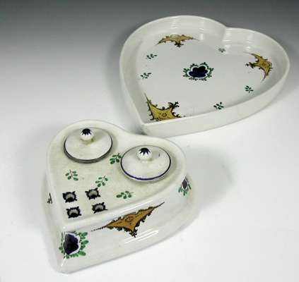A Wemyss heart-shaped inkwell and matching tray,