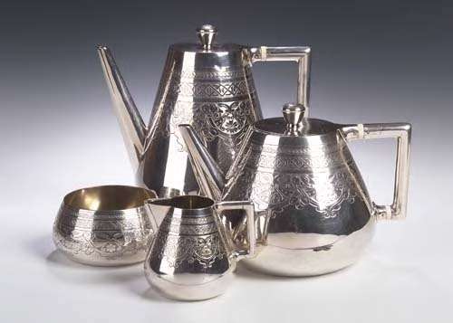 Christopher Dresser (1834-1904) A four piece electroplated tea and coffee service,