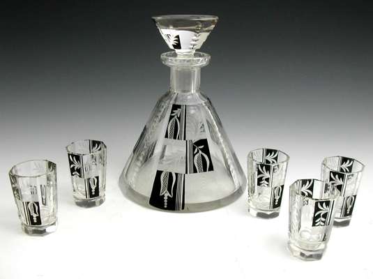 An Art Deco glass liqueur set,