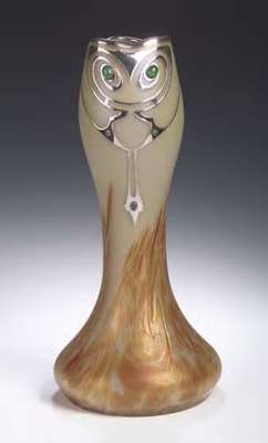 A Loetz gilt metal mounted iridescent glass vase,