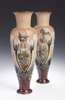 of shouldered baluster form, decorated in pate sur pate by Florence Barlow in the Art Nouveau style with birds on branches and with panels of flowers, incised and impressed marks (2)