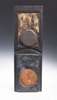 by Benny Sirota, formed as discs within panels and painted in colours, painted factory marks and monogram