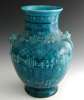 of 'Chinese' baluster form, impressed with geometric band and having moulded lion ring handles, covered in a 'Bleu Deck' turquoise glaze, impressed mark 'TH. DECK 1870'