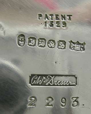 designed for James Dixon and Sons, and comprising a lidded coffee pot, 20cm high; a lidded tea pot, 15cm high; a milk jug, 8cm high; and a sugar bowl, 11cm diameter, each of tapering form cast with a decorative foliate band, bears stamped facsimile signature and factory marks, no. 2293 (4)