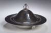 of circular dished form with applied beaded rim and hot watr compartment below, the domed lid with basket finial set with ametheyst-coloured cabochon, apparently unmarked (2)