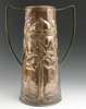 of tapering form, repousse decorated in the manner of John Pearson with stylised tree forms