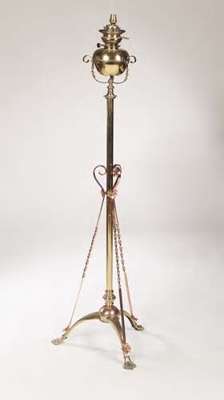 An Arts and Crafts brass and copper standard lamp,