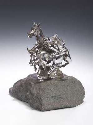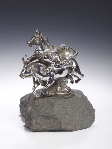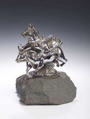 depicting a rodeo rider, signed (horse's tail and reins lacking)