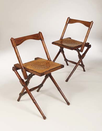 A pair of Adler Veneer Co.stained beech folding chairs,