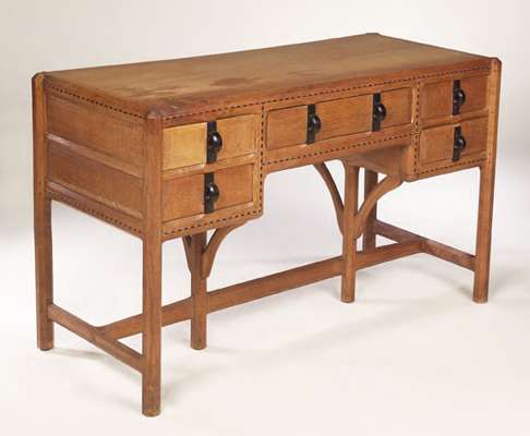 Note: Bears label under drawer inscribed: 'This piece, a dressing table, in English oak, no.178, was designed and made throughout in the Russell workshops Oct/Nov 1925. Designer, S. Gordon Russell; Foreman, E. Turner; Cabinet Maker, C. Turner'